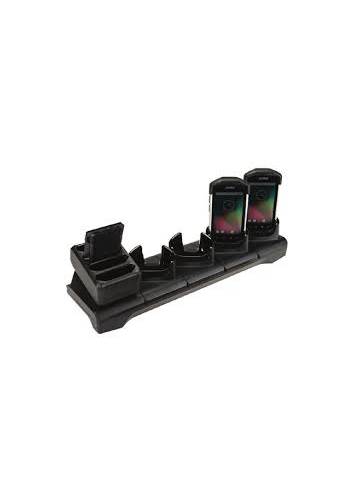 4-pozycyjna ładowarka terminali Zebra TC7X z miejscem na ładowanie 4szt. baterii. Dodatkowo należy dokupić 4-pozycyjną ładowarkę baterii, zasilacz, kabel DC, kabel zasilający.