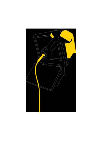 Uchwyt na skaner do  montażu na terminalu wózkowym Zebra VC8300. Uchwyt umożliwia stabilne połączenie, gdzie operator wózka widłowego może swobodnie korzystać zarówno z terminala jak i przymocowanego do niego skanera.