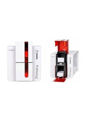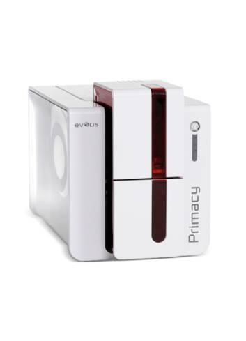 Evolis Primacy to wydajna i prosta w obsłudze drukarka, przeznaczona do zadruku średnich ilości kart plastikowych. Urządzenie posiada możliwość jednostronnego lub dwustronnego zadruku kart w rozdzielczości 300 dpi z szybkością 190-225kart/h w kolorze lub 850kart/h monochromatycznych (druk jednostronny). Obsługuje standardowe karty plastikowe o wymiarach 85,6x54 mm i grubości 0,25-1,25 mm. Standardowo drukarka wyposażona jest w interfejs USB, Ethernet oraz podajnik na 100 kart. Urządzenie posiada możliwość wyboru kodera: paska magnetycznego, kart zbliżeniowych, chipowych czy opcji laminatora. Kolor czerwony lub niebieski.